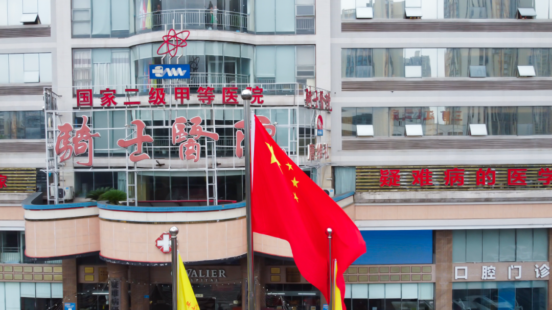 晨光中,这面冉冉升起的国旗和院旗,见证着骑士医院从部队医院到现代化医疗机构的蜕变,更凝聚着一代代医护人员的使命与担当。在祖国华诞这一天,这份跨越时光的坚守,既是对过往的致敬,更是对未来的承诺——以医为刃,以爱为甲,守护生命,不负荣光。