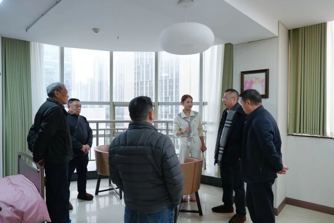 随后,在谭春勇的陪同下,原重庆市中小企业局老领导及现任重庆市中小企业发展促进会领导一行,先后前往7楼抗衰养老养护区(居家式养老区)、5楼血液(净化)垃圾清除治疗区实地考察调研。
