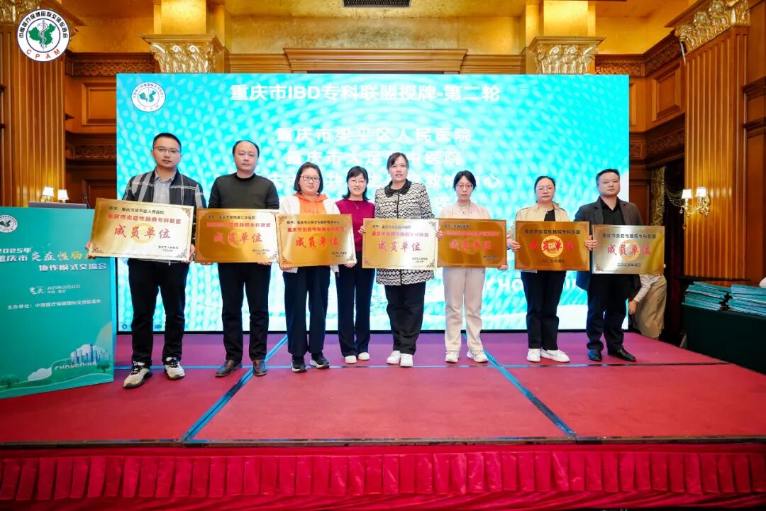 业务院长唐梅与肛肠科主任蒋应祥代表医院接受授牌。这一荣誉,标志着骑士医院在IBD及相关肛肠疑难病的诊疗能力获得了业内权威认可,正式融入重庆地区IBD专科诊疗的核心协作网络。